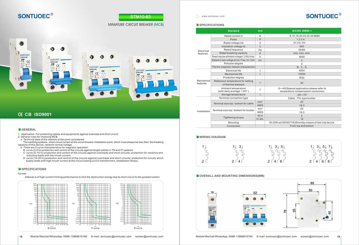 SONTUOEC er einn af kínverskum birgjum/framleiðendum sem sérhæfir sig í framleiðslu á ýmsum litlum rafmagnstækjum STM10-63 Series hárbrotandi smárafrásarrofi hefur eiginleika uppbyggingu háþróaðrar, frammistöðu áreiðanleg, brotgeta mikil, útlit glæsilegur og skel hans og hlutar eru úr efni með höggþol, sterkan logavarnarbúnað. Það er hentugur fyrir raforkukerfi með 50 eða 60 tíðni, Ue 400V og lægri, Ui 63A og neðan. Það er í samræmi við staðla IEC60898.1 og GB10963.1